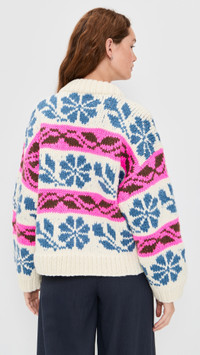- Fabric: Heavyweight fair isle knit with stretch - Ribbed edges - Mock neck - Long sleeves with dropped shoulders - Shell: 95% wool/5% acrylic - Dry clean - Imported, China Style #SEAAA22600 Size & Fit Model measurements: Size XS: Maia (5'10") usually wears size XS Measurements from size XS Length: 22.75in / 58.0cm, from shoulder