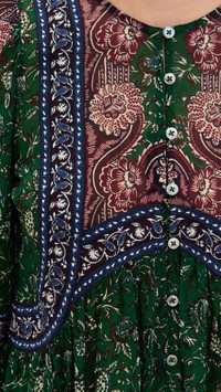 - Fabric: Mid-weight, non-stretch crepe - Floral print and contrast embroidery - Crew neck - Long sleeves with button cuffs - Button placket - Shell: 100% viscose - Trim: 100% polyester - Dry clean - Imported, India Style #SEAAA22479