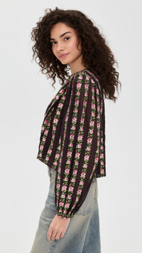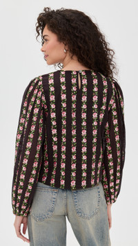 - Fabric: Lightweight, non-stretch voile - Allover embroidered flowers - Wrap silhouette at front - Pleating at shoulder - Crew neck - Long sleeves with elastic cuffs - Button keyhole at back - Shell: 100% cotton - Lined - Dry clean - Imported, India Style #SEAAA22580 Size & Fit Model measurements: Size XS: Brianna (5'9") usually wears size XS Measurements from size XS Length: 19.75in / 50.0cm, from shoulder