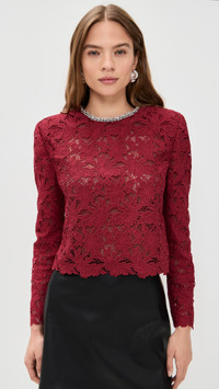 Burgundy Lace Crystal Trim Top