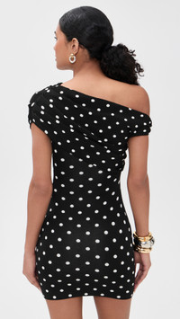 Polka Dot Draped Knit Mini Dress