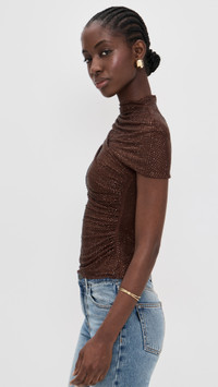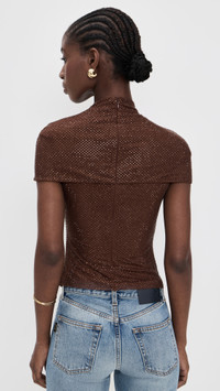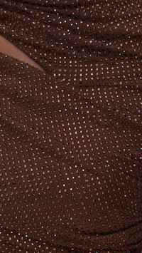 Brown Rhinestone Mesh Cut Out Top