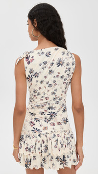 - Fabric: Lightweight, super-stretch jersey - Tie at shoulder and ruching at waist - Floral print - Ruffled hem - Mini length - Crew neck - Sleeveless - Pullover design, no closure - Shell: 90% polyester/10% elastane - Hand wash - Imported, Turkey Style #SIEDR30117 Size & Fit Model measurements: Size XS: Rocio (5'11") usually wears size XS Measurements from size XS Length: 33.5in / 85.0cm, from shoulder