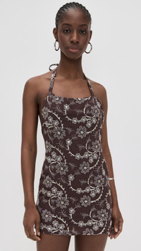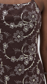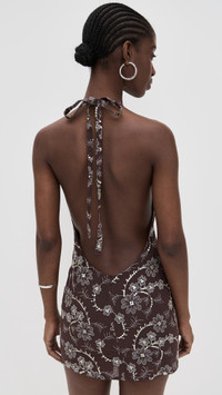 - Fabric: Lightweight, non-stretch weave - Floral embroidery with sequin accents - Mini length - Halter neckline - Hidden zip at back - Shell: 100% polyester - Lined - Hand wash or dry clean - Imported, Turkey Style #SIEDR30115