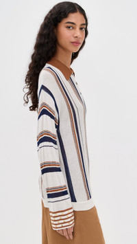 - Fabric: Lightweight, super-stretch fine knit - Stripe pattern - Sequin accents at cuffs - Collared neck - Long sleeves - Partial button placket - Shell: 100% viscose - Hand wash - Imported, Turkey Style #SIEDR30116