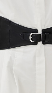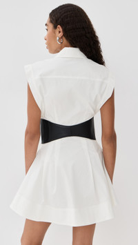 - Fabric: Lightweight stretch poplin - Faux leather belt - Mini length - Collared neck - Short cap sleeves - Button placket - Shell: 63% cotton/37% polyester - Partially lined - Dry clean - Imported, China Style #JONDB31804