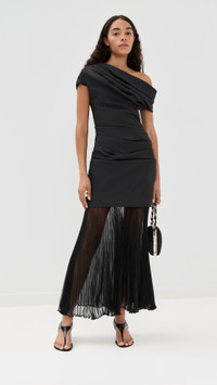 Ammalie draped pleated-skirt taffeta dress