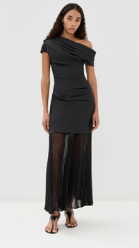 - Fabric: Mid-weight, non-stretch taffeta - Pleated organza skirt - Gathered bodice - Maxi length - One-shoulder neckline - Sleeveless - Hook-and-eye and hidden zip at side - Semi-sheer - Shell: 60% polyester/40% nylon - Shell: 100% polyester - Lined bodice, unlined skirt - Lining: 100% polyester - Dry clean - Imported, China Style #JONDB31848 Size & Fit Model measurements: Size 0: Anisa (5'8.5") usually wears size 0 Measurements from size 2 Length: 47.25in / 120.0cm, from shoulder