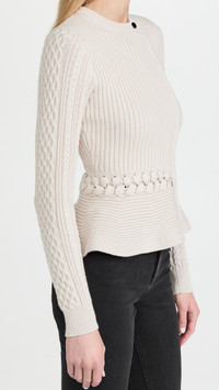 - Fabric: Mid-weight cable knit - Asymmetrical zip placket - Long sleeves with ribbed cuffs - Flounce hem - Shell: 82% cotton/16% wool/2% spandex - Dry clean - Imported, China Style #JONDB30889 Size & Fit Model measurements: Size XS: Nikayla (5'9.5") Measurements from size S Length: 21.25in / 54.0cm, from shoulder