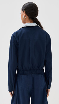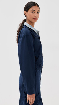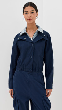 - Fabric: Mid-weight, non-stretch canvas - Layered design - Denim layer with two-way zip closure - Collared neck - Long sleeves with snap cuffs - Snap placket - Slant hip pockets - Shell: 98% cotton/2% elastane - Lined - Lining: 97% cotton/3% spandex - Wash cold - Imported, China Style #JONDB31743 Size & Fit Model measurements: Size XS: Rocio (5'11") usually wears size XS Measurements from size S Length: 21.25in / 54.0cm, from shoulder