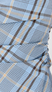 - Fabric: Mid-weight stretch weave - Gathering at waist - Plaid pattern - Slit at hem - Midi length - Cowl neck - Sleeveless - Button keyhole at back - Hook-and-eye and hidden zip at side - Shell: 68% polyester/29% viscose/3% elastane - Lined - Lining: 100% viscose - Wash warm - Imported, Turkey Style #JONDB31819
