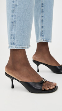 - Upper: Calfskin - Gold-tone decorative buckle at strap - Cushioned footbed - Lining: Leather - Slip on - Open toe - Leather sole with rubber heel cap - Imported, Brazil - This item cannot be gift-boxed Style #JONDB31722