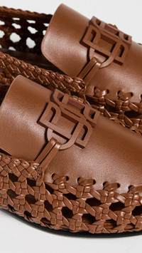 - Upper: Calfskin - Open and woven design at sides - Laser-cut logo vamp - Lightly padded footbed - Lining: Leather - Slip on - Round toe - Rubber sole - Imported, China - This item cannot be gift-boxed Style #JONDB31728