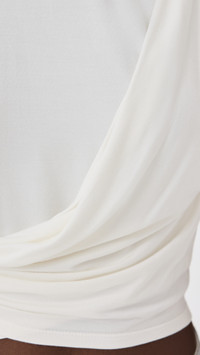 - Fabric: Lightweight slinky jersey - Pleated crisscross waist - Cropped length - Crew neck - Shell: 92% viscose/8% spandex - Hand wash - Imported, China - Cap sleeves and padded shoulders Style #JONDB31227 Size & Fit Model measurements: Size XS: Cher (5'11") usually wears size XS Measurements from size XS Length: 15.75in / 40.0cm, from shoulder