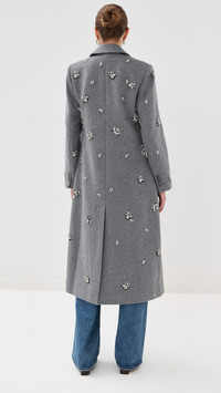 - Fabric: Heavyweight, non-stretch brushed wool weave - Allover crystal and sequin embellishments - Center back vent - Shoulder pads - Collared neck - Long sleeves with button cuffs - Double-breasted button placket - Welt front pockets - Shell: 50% polyester/50% wool - Lined - Lining: 55% polyester/45% viscose - Dry clean - Imported, China Style #JONDB31795