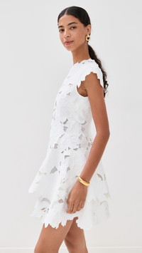 - Fabric: Lightweight, non-stretch twill - Cutout design with embroidered floral pattern - Tiered hem - Mini length - Mock neck - Short cap sleeves - Hook-and-eye and hidden zip at back - Shell: 100% polyester - Lined - Lining: 50% polyester/50% rayon - Dry clean - Imported, China Style #JONDB31745 Size & Fit Customers say: Runs small; please size up. Model measurements: Size 0: Rocio (5'11") usually wears size 0 Measurements from size 0 Length: 34.75in / 88.0cm, from shoulder