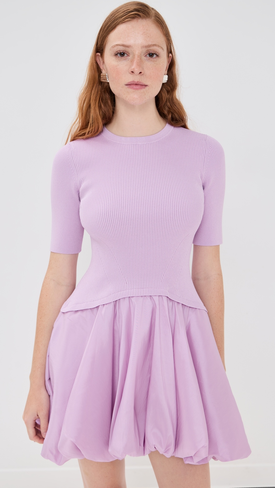 - Fabric: Mid-weight ribbed knit with stretch - Bubble hem - Mini length - Crew neck - Short sleeves - Pullover design, no closure - On-seam side pockets - Shell: 83% viscose/17% elastane - Trim: 70% polyester/30% nylon - Unlined bodice, lined skirt - Lining: 100% nylon - Hand wash - Imported, China Style #JONDB31730