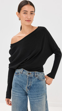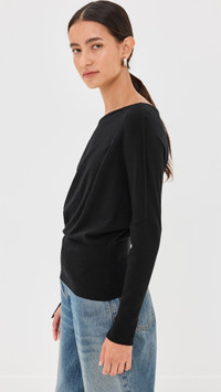 - Fabric: Lightweight knit - Draped design - Off-shoulder neckline - Shell: 62% wool/20% tencel lyocell/18% polyester - Dry clean - Imported, China - Long sleeves Style #JONDB31504 Size & Fit Model measurements: Size XS: Paloma (5'8.5") usually wears size XXS Measurements from size XS Length: 22.75in / 58.0cm, from shoulder