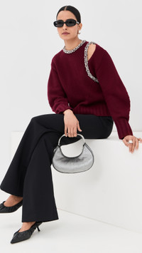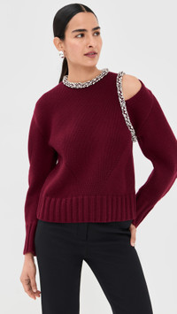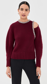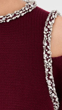 - Fabric: Heavyweight stretch knit - Crystal embellishments - Cutout detail at shoulder - Ribbed edges - Crew neck - Long sleeves - Button keyhole at back - Shell: 89% wool/10% cashmere/1% nylon - Dry clean - Imported, China Style #JONDB31846 Size & Fit Model measurements: Size XS: Priyanka (5'9") usually wears size XS Measurements from size XS Length: 20.75in / 53.0cm, from shoulder