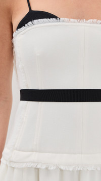 - Fabric: Heavyweight compact knit with stretch - Bustier-inspired bodice with boned seams - Frayed edges - Contrast trim and self-belt at waist - Midi length - Sweetheart neckline - Adjustable shoulder straps - Hook-and-eye and hidden zip at back - Shell: 62% polyester/33% rayon/5% spandex - Lined - Lining: 100% polyurethane - Wash cold - Imported, China Style #JONDB31654