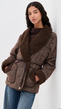 - Fabric: Heavyweight, non-stretch weave - Sherpa trim and fixed cuffs - Plaid pattern and quilted design - Shawl collar - Long sleeves - Open placket with self-belt closure - Slant hip pockets - Shell: 80% polyester/20% wool - Trim: 50% polyester/50% polyurethane - Lined - Lining: 100% polyester - Dry clean - Imported, China Style #JONDB31813 Size & Fit Customers say: Runs large; please size down. Model measurements: Size XS: Rocio (5'11") usually wears size XS Measurements from size XS Length: 27.5in / 70.0cm, from shoulder