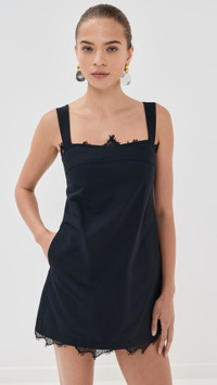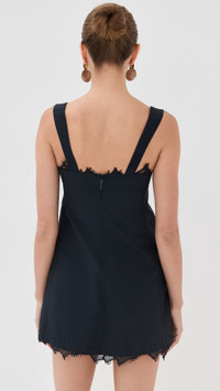 - Fabric: Lightweight, non-stretch faille weave - Lace trim - Mini length - Square neckline - Sleeveless - Hook-and-eye and hidden zip at back - On-seam side pockets - Shell: 62% cotton/38% polyamide - Trim: 100% polyester - Lined - Lining: 100% nylon - Wash cold - Imported, China Style #JONDB31749 Size & Fit Customers say: Runs large; please size down. Model measurements: Size 0: Margaret (5'11") usually wears size 0 Measurements from size 2 Length: 30.75in / 78.0cm, from shoulder to front hem