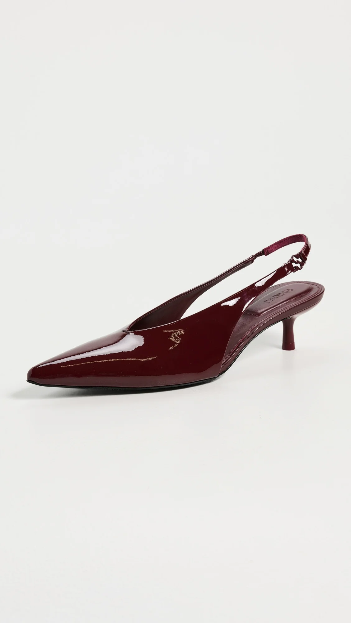 - Upper: Calfskin - Patent leather - Slingback strap with elastic inset - Padded footbed - Lining: Leather - Kitten heel - Slip on - Pointed toe - Leather sole with rubber heel cap - Imported, Brazil - This item cannot be gift-boxed Style #JONDB31769 Size & Fit Heel: 1.75in / 45mm