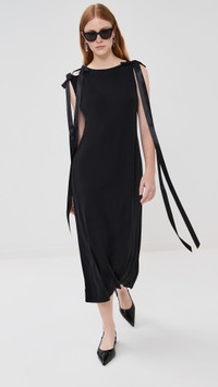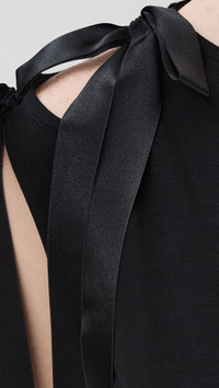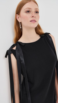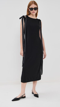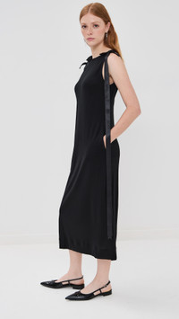 - Fabric: Lightweight, fine jersey with stretch - Satin ribbon bow detailing and cutout at shoulders - Midi length - Boat neck - Sleeveless - Pullover design, no closure - On-seam side pockets - Shell: 100% lyocell - Trim: 100% polyester - Unlined - Wash cold - Made in Portugal Style #SROCH30384