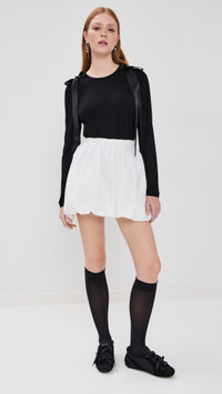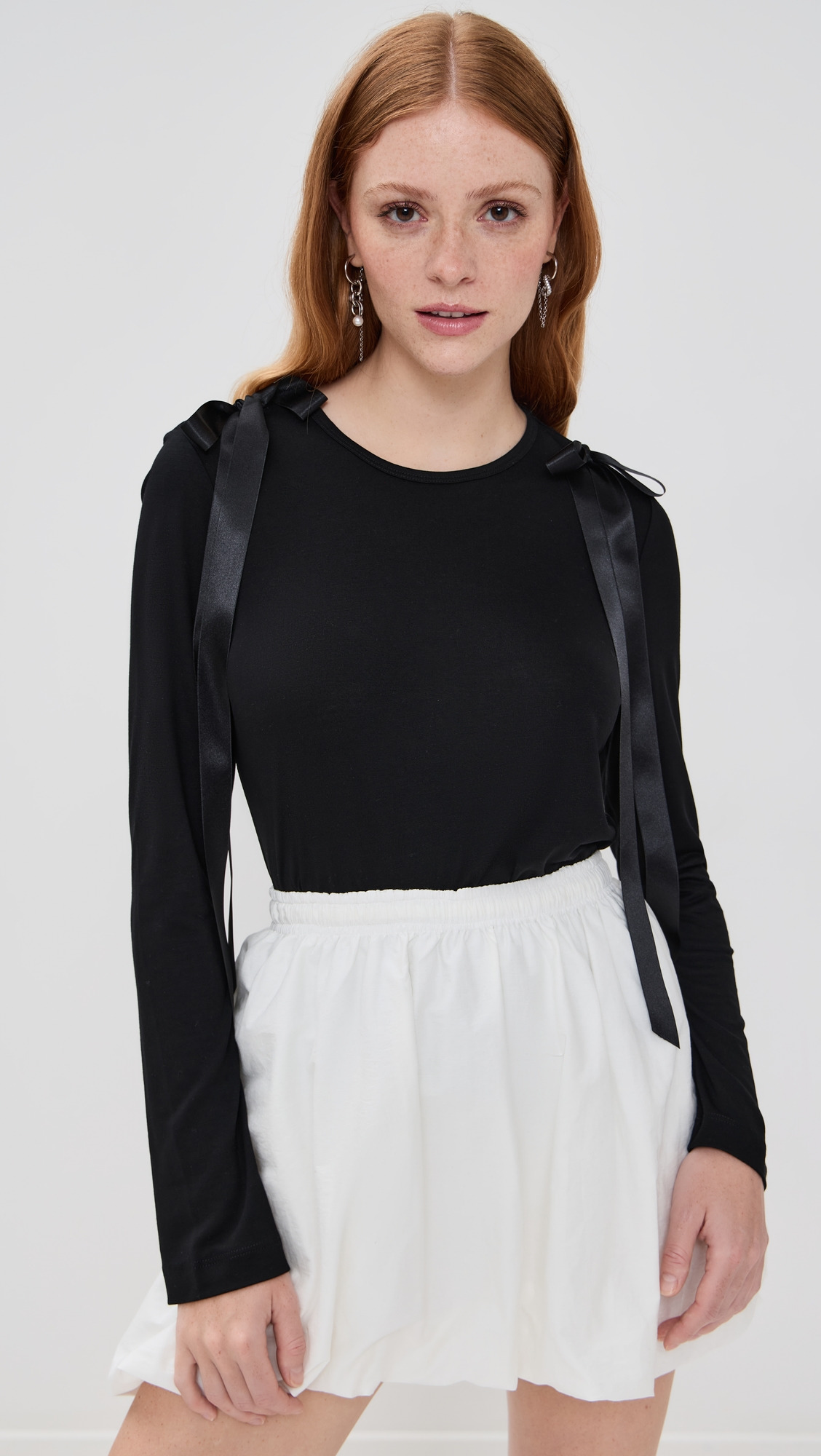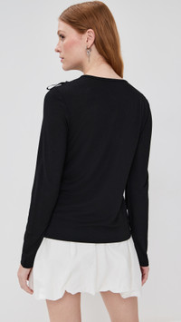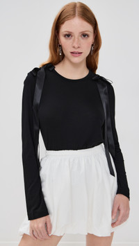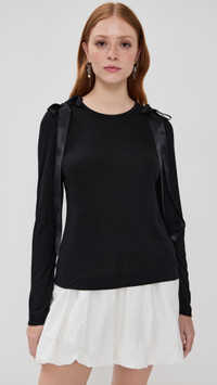 - Fabric: Lightweight stretch jersey - Satin ribbon bow detailing - Crew neck - Long sleeves - Shell: 100% lyocell - Trim: 100% polyester - Wash cold - Made in Portugal Style #SROCH30379 Size & Fit Customers say: Runs large; please size down. Model measurements: Size S: Haley (5'9.5") usually wears size S Measurements from size S Length: 23.25in / 59.0cm, from shoulder