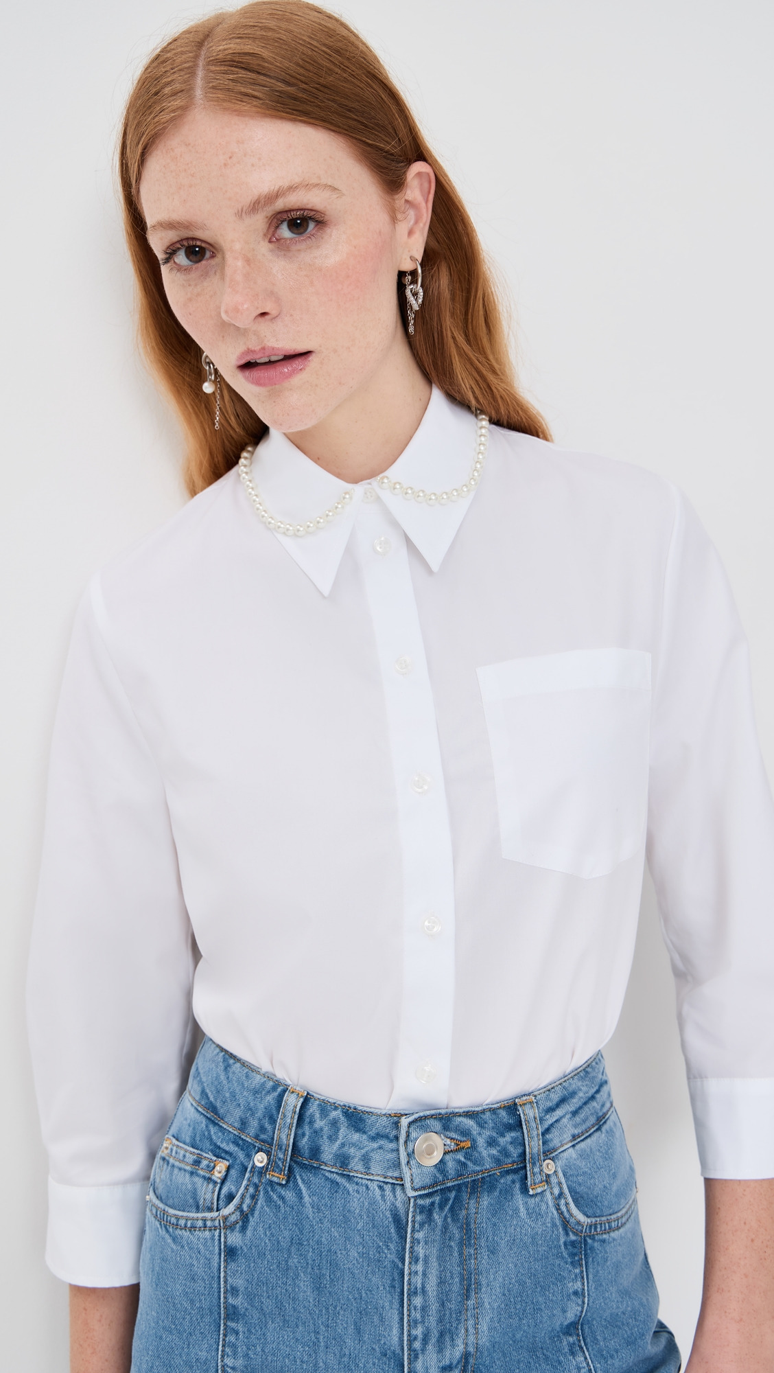 - Fabric: Lightweight, non-stretch shirting - Imitation pearl trim - Collared neck - Long sleeves with button cuffs - Button placket - Patch breast pocket - Shell: 100% cotton - Hand wash - Made in Portugal Style #SROCH30385