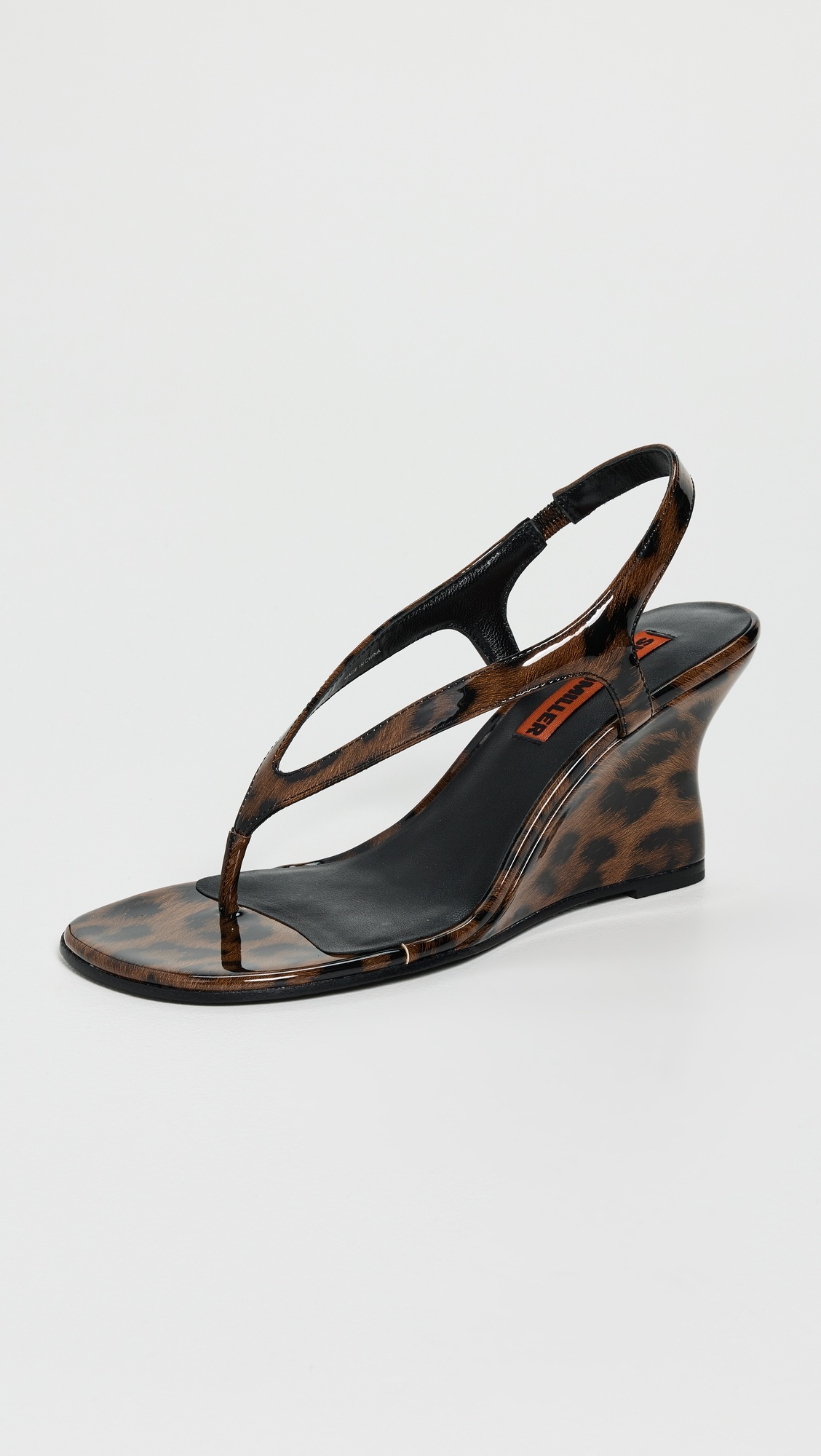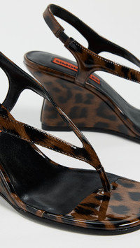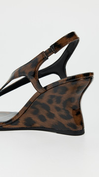- Upper: Faux patent leather - Leopard print - Lining: Leather - Wedge heel - Slip on - Open toe - Leather sole with rubber heel cap - Imported, China - This item cannot be gift-boxed Style #SIMIL30924
