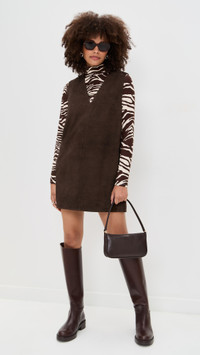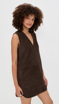 - Fabric: Mid-weight, non-stretch suede - Mini length - V neck - Sleeveless - Pullover design, no closure - On-seam side pockets - Shell: 100% goatskin - Lined - Lining: 100% polyester - Dry clean - Imported, India Style #SIMIL30982