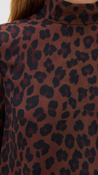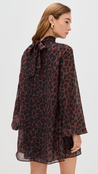 - Fabric: Lightweight, non-stretch chiffon - Leopard print - Mini length - Mock neck - Long sleeves with elastic cuffs - Tie keyhole at neckline - Shell: 100% polyester - Lined - Wash cold - Imported, China Style #SIMIL30974