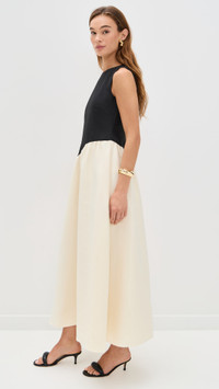 - Fabric: Mid-weight, non-stretch faille - Woodgrain pattern - Asymmetrical and curved waist - Gathered contrast skirt - Midi length - Crew neck - Sleeveless - Hook-and-eye and hidden zip at back - Shell: 100% polyester - Lined - Dry clean - Imported, China Style #SIMIL30976 Size & Fit Customers say: Runs large; please size down. Model measurements: Size XS: Mia (5'9.5") usually wears size XS Measurements from size XS Length: 52.75in / 134.0cm, from shoulder to front hem