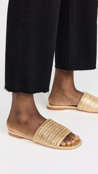 - Upper: Metallic woven raffia - Whip stitch trim - Lining: Leather - Slip on - Leather sole - Imported, China - This item cannot be gift-boxed Style #SIMIL30864 Size & Fit This shoe is available in whole sizes only. If you wear a half size, please size up.