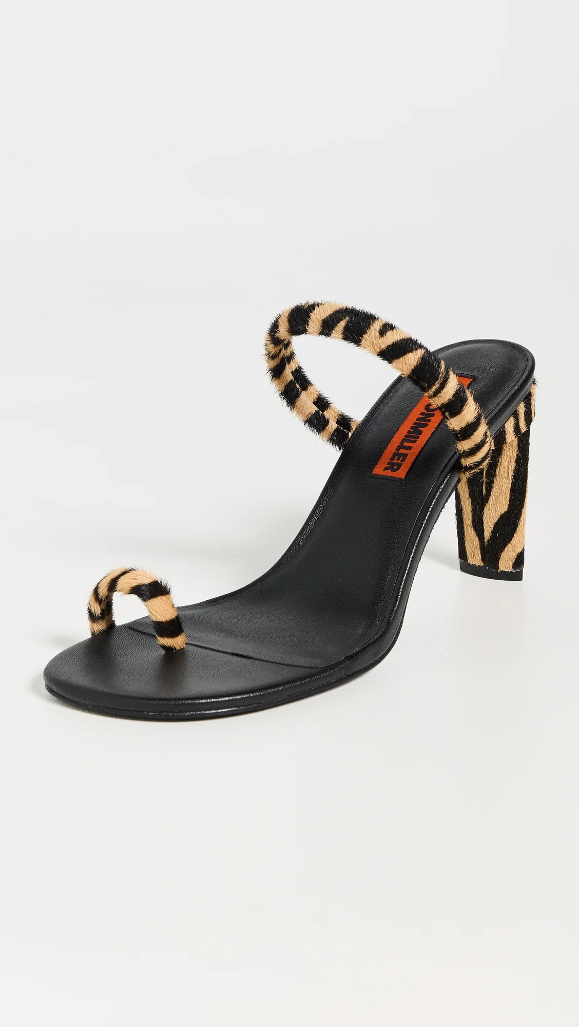- Dyed haircalf (cow), from China - Upper: Haircalf - Zebra print - Toe strap - Cushioned footbed - Lining: Unlined - Stiletto heel - Slip on - Open toe - Leather sole with rubber heel cap - Imported, China - This item cannot be gift-boxed Style #SIMIL31003