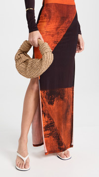 - Woven raffia - Knotted top handle - Magnetic snap - Textile lining - Weight: 9oz / 0.26kg - Imported, China Style #SIMIL30796 Size & Fit Length: 11.75in / 30cm Height: 5in / 13cm Depth: 2.75in / 7cm Handle drop: 2.75in / 7cm