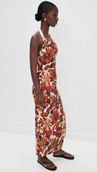 - Fabric: Mid-weight, non-stretch linen weave - Ruching at waist - Side slit - Midi length - Halter neckline - Hook-and-eye and hidden zip at side - Shell: 100% linen - Lined - Lining: 100% cotton - Dry clean - Imported, China Style #SIRRR30148 Size & Fit Model measurements: Size 0: Cher (5'11") usually wears size 0 Measurements from size 0 Length: 53.25in / 135.0cm, from shoulder