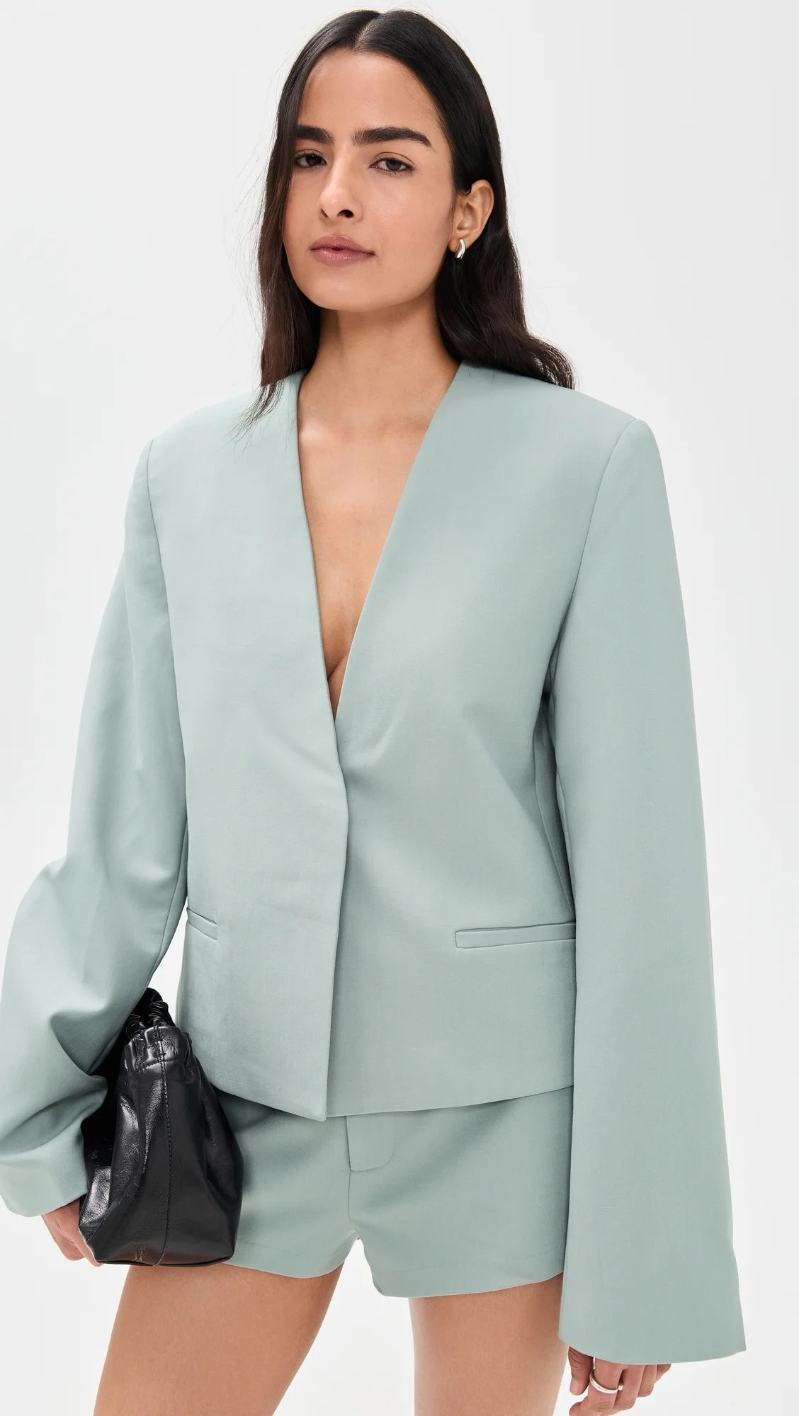 - Fabric: Mid-weight, low-stretch weave - Padded shoulders - Long sleeves with button cuffs - Single-breasted button placket - Welt front pockets - Shell: 50% wool/45% polyester/5% elastane - Lined - Lining: 100% polyester - Dry clean - Imported, China Style #SIRRR30155 Size & Fit Model measurements: Size 0: Priyanka (5'9") usually wears size 0 Measurements from size 0 Length: 23.25in / 59.0cm