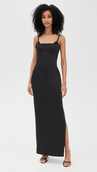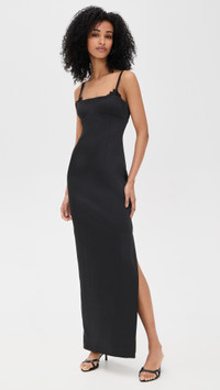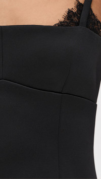 - Fabric: Heavyweight, non-stretch satin - Lace trim - Square neckline - Hook-and-eye and hidden zip at back - Shell: 85% polyester/15% rayon - Trim: 100% nylon - Lined - Lining: 100% polyester - Dry clean - Imported, China Style #SIRRR30113