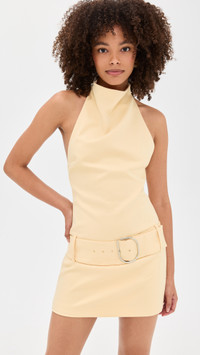 Sabina Belted Draped Woven Halterneck Mini Dress