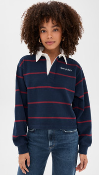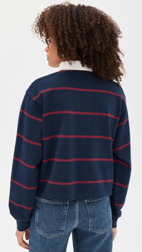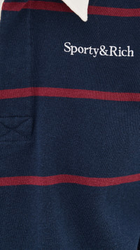 - Fabric: Mid-weight, low-stretch jersey - Stripe pattern - Woven trim - Polo neckline - Long sleeves - Partial button placket - Shell: 100% cotton - Wash cold - Made in Portugal Style #SRICH30054 Size & Fit Model measurements: Size S: Alexis (5'8") usually wears size XS-S Measurements from size S Length: 19.75in / 50.0cm, from shoulder