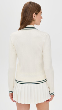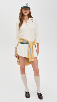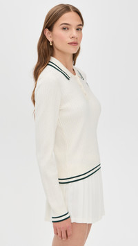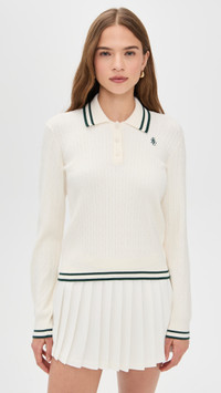 - Fabric: Mid-weight, super-stretch cable knit - Logo embroidery at chest - Contrast stripes and ribbed trim - Polo neckline - Long sleeves - Partial button placket - Shell: 85% viscose/15% polyester - Unlined - Hand wash or dry clean - Imported, Morocco Style #SRICH30064 Size & Fit Model measurements: Size XS: Margaret (5'11") usually wears size XS Measurements from size XS Length: 20.75in / 53.0cm, from shoulder