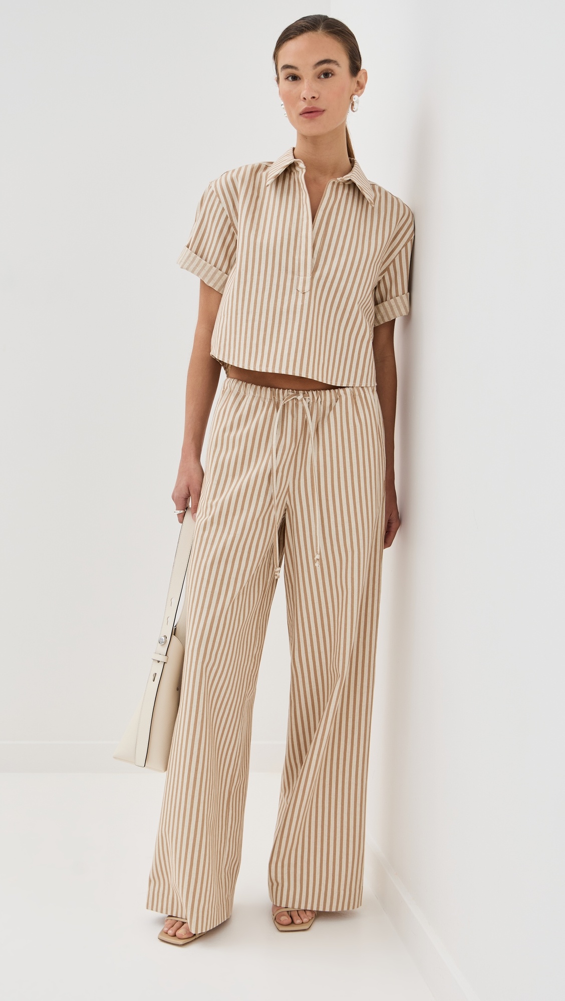 - Fabric: Mid-weight, non-stretch linen weave - Stripe print - Covered elastic waist with drawstring - On-seam side pockets - Shell: 75% cotton/25% linen - Hand wash - Made in the USA Style #SPRWM30210 Size & Fit Customers say: Runs large; please size down. Model measurements: Size XS: Mia (5'9.5") usually wears size XS Measurements from size XS Rise: 10.75in / 27cm Inseam: 32.25in / 82cm Leg opening: 24.5in / 62cm