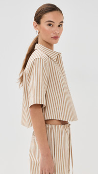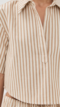 CAMEL STRIPED LINEN CROPPED HENLEY