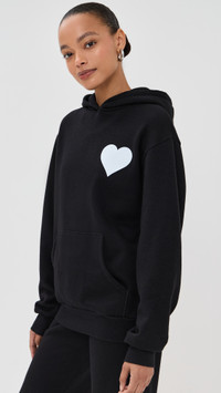 - Fabric: Soft, mid-weight fleece - Heart print at chest - Hooded neckline - Kangaroo pocket - Shell: 50% polyester/38% cotton/12% rayon - Wash cold - Made in the USA - Long sleeves Style #SPRWM30211 Size & Fit Model measurements: Size XS: Alexis (5'8") usually wears size XS-S Measurements from size S Length: 26in / 66.0cm, from shoulder