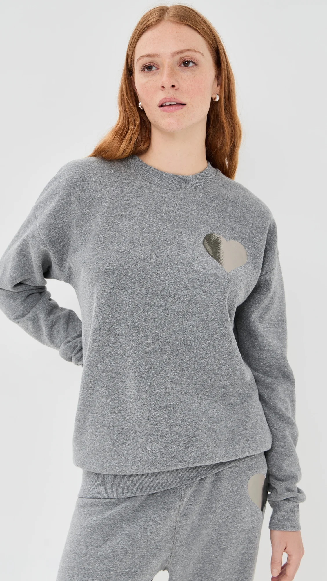 - Fabric: Mid-weight stretch fleece - Graphic heart detail at front - Crew neck - Long sleeves with dropped shoulders - Ribbed trim - Shell: 50% polyester/38% cotton/12% rayon - Wash cold - Made in the USA Style #SPRWM30214
