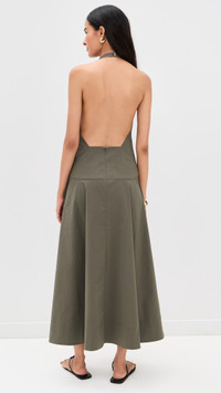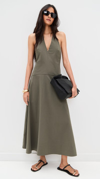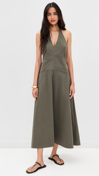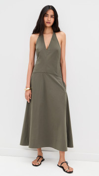 - Fabric: Lightweight, low-stretch crisp weave - Button closures at neckline - Maxi length - Halter neckline - Sleeveless - Hidden zip at back - On-seam side pockets - Shell: 66% cotton/31% recycled nylon/3% spandex - Unlined - Hand wash - Imported, China Style #STAGN30163 Size & Fit Customers say: Runs large; please size down. Model measurements: Size XS: Priyanka (5'9") usually wears size XS Measurements from size S Length: 51.25in / 130.0cm, from shoulder