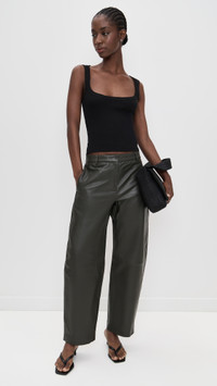 - Fabric: Mid-weight, non-stretch leather - Hook-and-eye closures at waist, button fly - On-seam side pockets and welt back pockets - Shell: 100% lambskin - Lined - Dry clean - Imported, India Style #STAGN30159 Size & Fit Model measurements: - Size XS: Cher (5'11") usually wears size XS - Size S: Priyanka (5'9") usually wears size XS Measurements from size S Rise: 11in / 28cm Inseam: 29.25in / 74cm Leg opening: 19in / 48cm