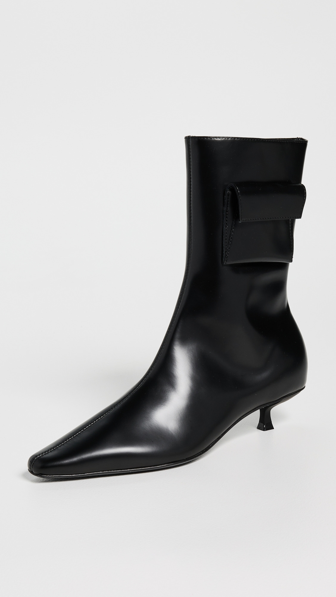 - Upper: Calfskin - Velcro side pocket - Lining: Leather - Kitten heel - Ankle zip - Pointed toe - Leather sole with rubber heel cap - Imported, China - This item cannot be gift-boxed Style #STAGN30150